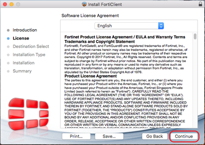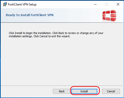 ‘Welcome to the FortiClient Setup Wizard’ screen enable the checkbox and select