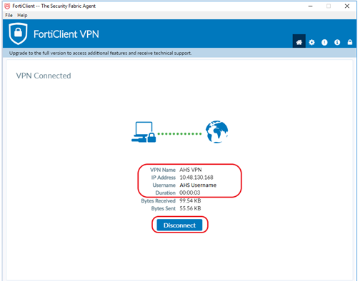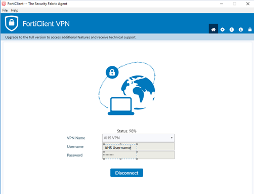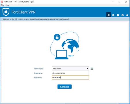 completed, click ‘Connect’ and a connection to the AHS SSL VPN portal should be
