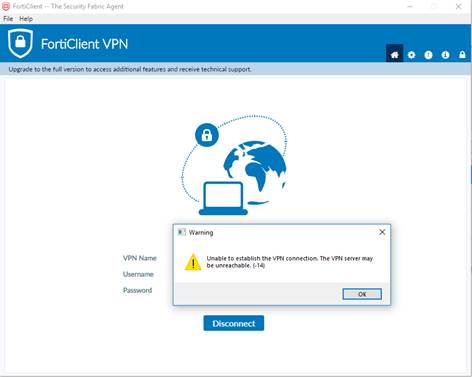 to establish the VPN Connection. The VPN server may be unreachable. (-14)”
