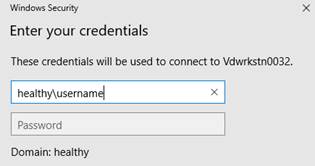 6.3 Enter your AHS AD credentials in the format healthy\username and your password
